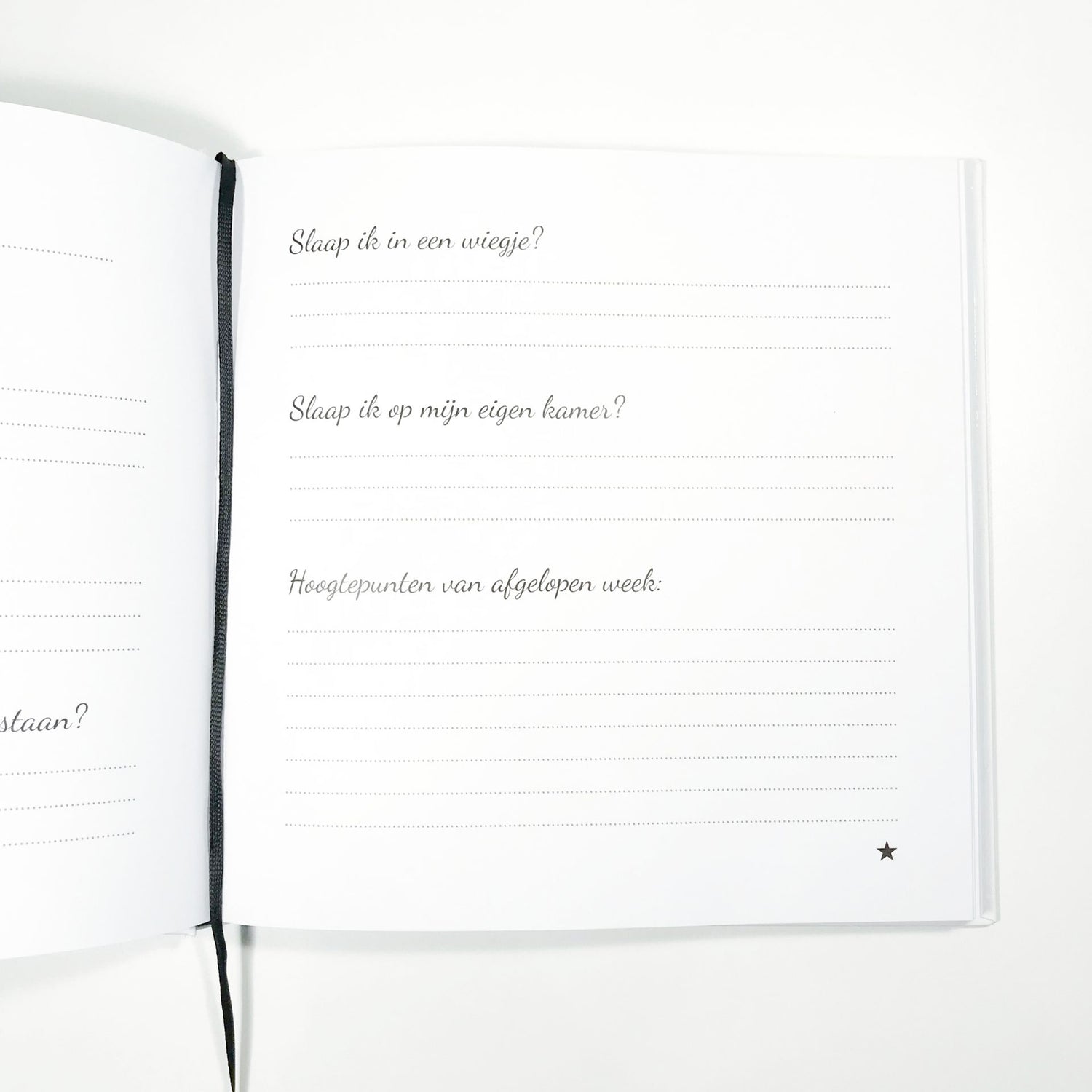 Wil je nog iets persoonlijks voor de baby schrijven of nog wat extra foto’s plakken? Dat kan helemaal achterin het boek.