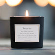 Prachtige kaars vol troost, met een heerlijke zachte geur in een zwart glas met een gedichtje.