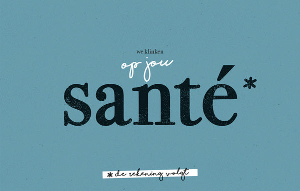 - Tekst: we klinken op jou santé, de rekening volgt