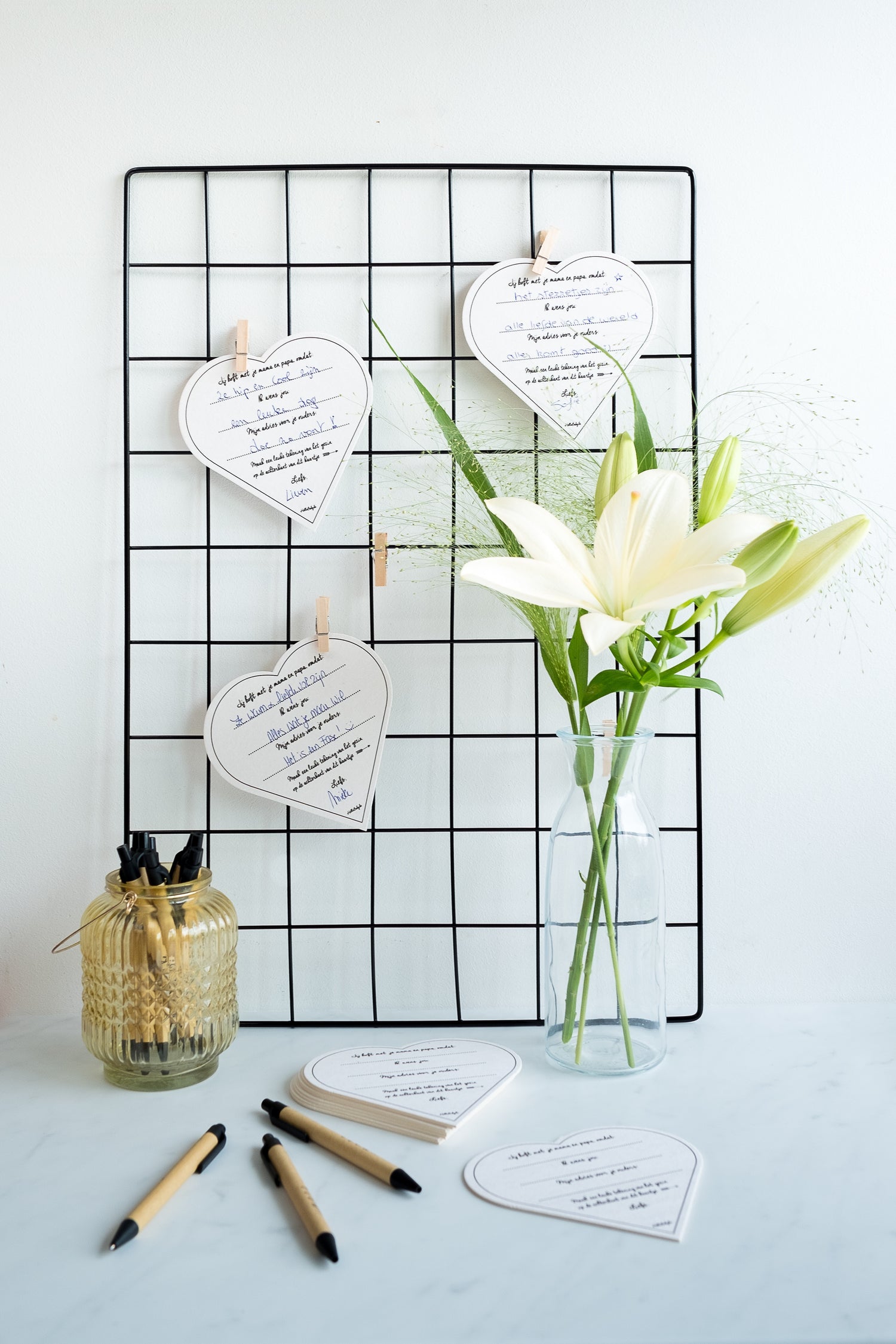 Zo bekom je een creatiever gastenboek dan de standaard boekjes of schriftjes die je op elke andere babyborrel kan vinden. Dit is een prachtige herinnering voor later. Hang na jullie feest deze kaartjes uit in de huis- of babykamer.