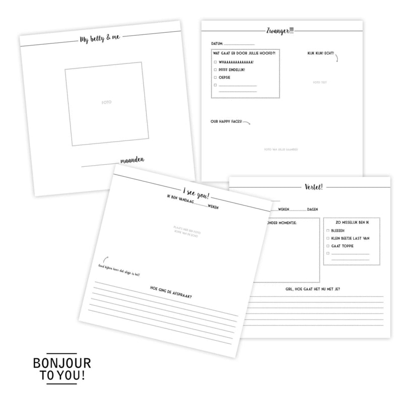 Een verzamelplaats voor al jouw buikfoto's, de echo's, geboortekaartje ideetjes, babykamer moodboard ruimte, wil je weten wat het gaat worden en hoe ga je het eventueel vertellen aan iedereen, hoe was de babyshower, wat heb je allemaal al geshopt voor de baby, plek voor jouw geboorteplan, natuurlijk wekelijks plek om op te schrijven hoe het met jou gaat en nog veel meer!